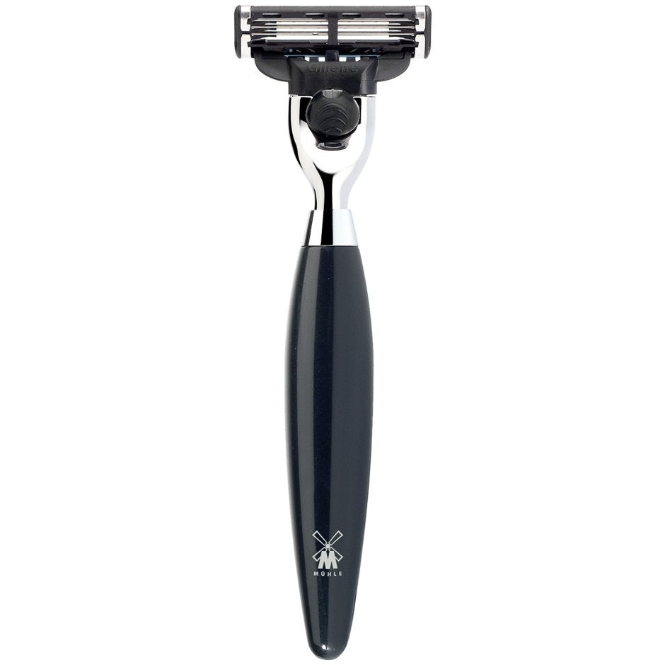 Muhle Mach3 Scheermes Kosmo Zwart heeft een handvat gemaakt van hoogwaardig edelhars, een sterk en duurzaam materiaal dat bekendstaat om zijn luxe uitstraling en uitstekende grip. Edelhars is niet alleen bijzonder sterk, maar ook bestand tegen vocht, waardoor het perfect geschikt is voor dagelijks gebruik. Het gladde oppervlak van het edelhars handvat biedt comfort en controle, terwijl de zwarte afwerking een moderne look geeft. Dit hoogwaardige materiaal maakt het scheermes zowel functioneel als een stijlvol accessoire in je scheerroutine.