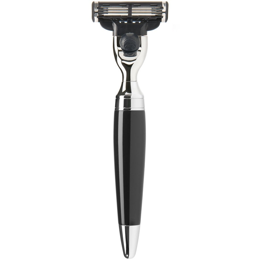 Muhle Mach3 Scheermes Stylo Zwart heeft een handvat van hoogwaardig zwart kunststof, dat zowel lichtgewicht als duurzaam is. Het verchroomde metaal zorgt voor een elegante afwerking en versterkt het scheermes. De combinatie van deze materialen biedt niet alleen een moderne uitstraling, maar ook een stevige grip, zodat je altijd een nauwkeurige, gladde huid krijgt. Het gebruik van deze premium materialen zorgt ervoor dat het scheermes lang meegaat en geschikt is voor dagelijks gebruik.