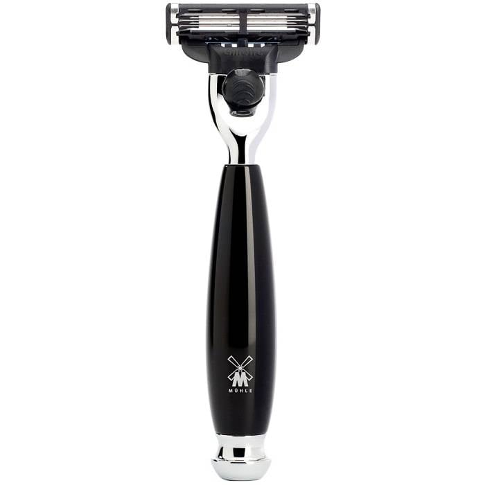 Muhle Mach3 Scheermes Vivo Zwart combineert een uniek design met sterke materialen. Het handvat is gemaakt van zwart kunststof en wordt stijlvol afgewerkt met verchroomde metalen accenten, wat zorgt voor een luxe en stevige uitstraling. Het ontwerp ligt prettig in de hand, wat zorgt voor een gecontroleerde en comfortabele scheerbeurt. Dit scheermes is compatibel met Gillette Mach3 scheermesjes, die bekend staan om hun soepele scheerresultaat en huidvriendelijkheid. Ideaal voor wie houdt van een strak en functioneel scheermes dat kwaliteit en design samenbrengt.