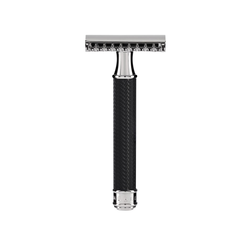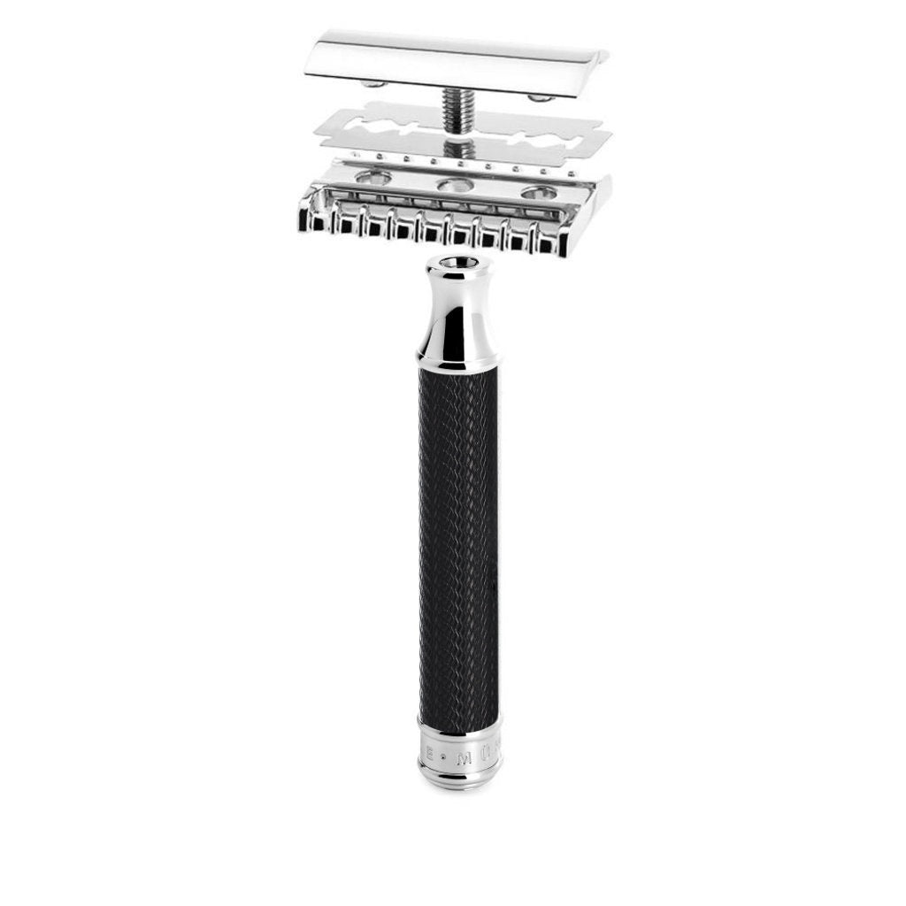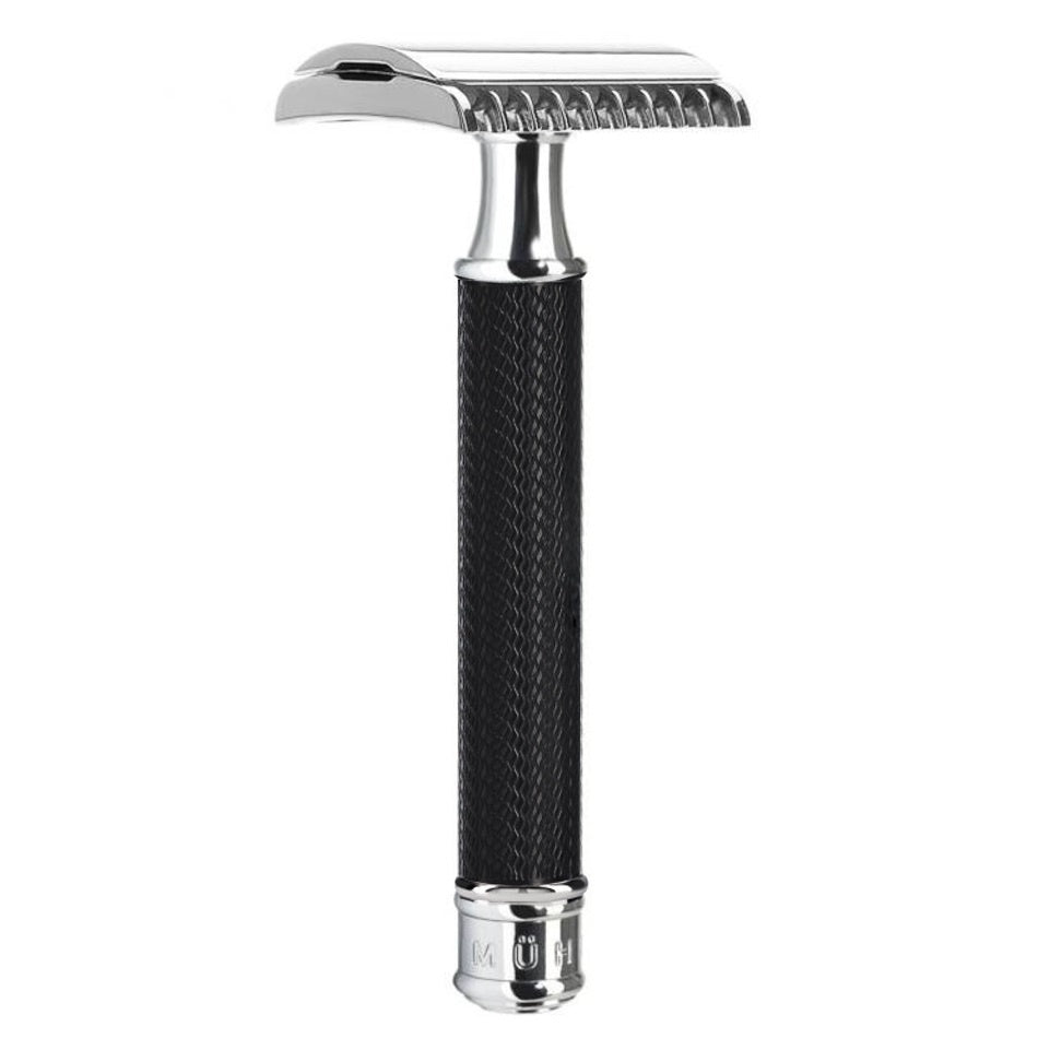 Muhle R41 Double Edge Safety Razor Zwart is een sterk scheermes dat bekend staat om zijn goede scheerresultaten. Het ontwerp heeft een open kam, wat zorgt voor een efficiënte scheerbeurt , zelfs bij een dikkere baardgroei. Het handvat is ontworpen voor een comfortabele grip, terwijl de roestvrijstalen constructie en het zwarte kunststof handvat zorgt voor langdurige levensduur. Of je nu een ervaren scheerder bent of op zoek bent naar een krachtig scheermes, de Muhle R41 levert een nauwkeurige en gladde scheerbeurt.