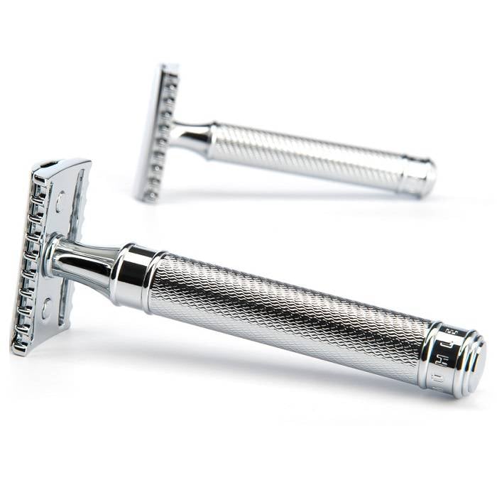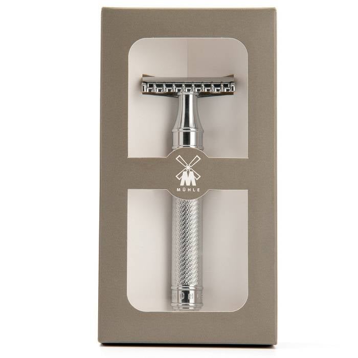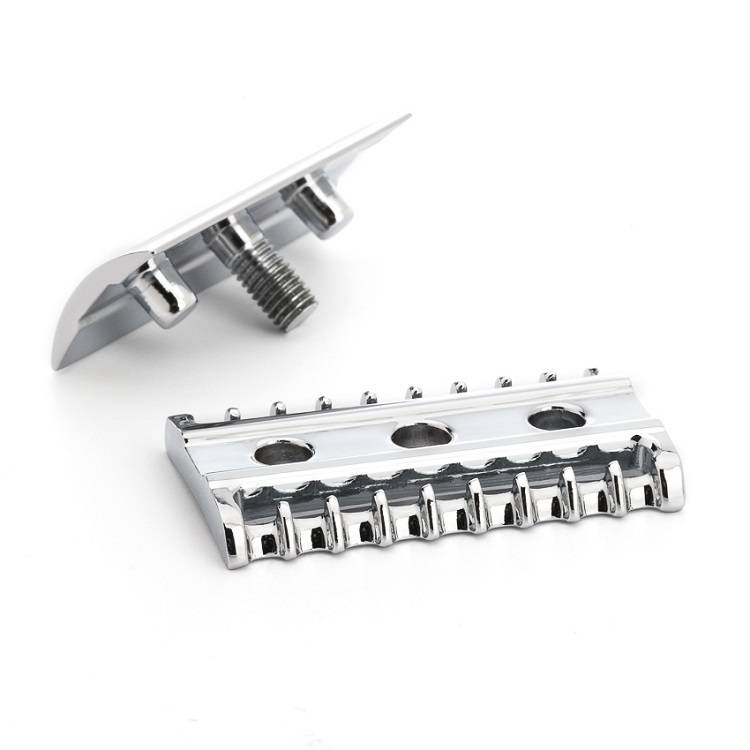 Muhle R41 Grande Double Edge Safety Razor is gemaakt van verchroomd metaal, wat zorgt voor een lange levensduur als een stijlvolle uitstraling. Het verchroomde oppervlak biedt niet alleen een glanzende afwerking, maar beschermt het scheermes ook tegen corrosie, waardoor het bestand is tegen dagelijks gebruik en de elementen. Dit sterke materiaal garandeert een lange levensduur, zelfs bij intensief gebruik, en zorgt ervoor dat de R41 jarenlang zijn uitstraling en functionaliteit behoudt. Het verchroomde metaal geeft het mes een luxueuze uitstraling, waardoor het niet alleen een effectief scheermes is, maar ook een mooie aanvulling op je scheerset.