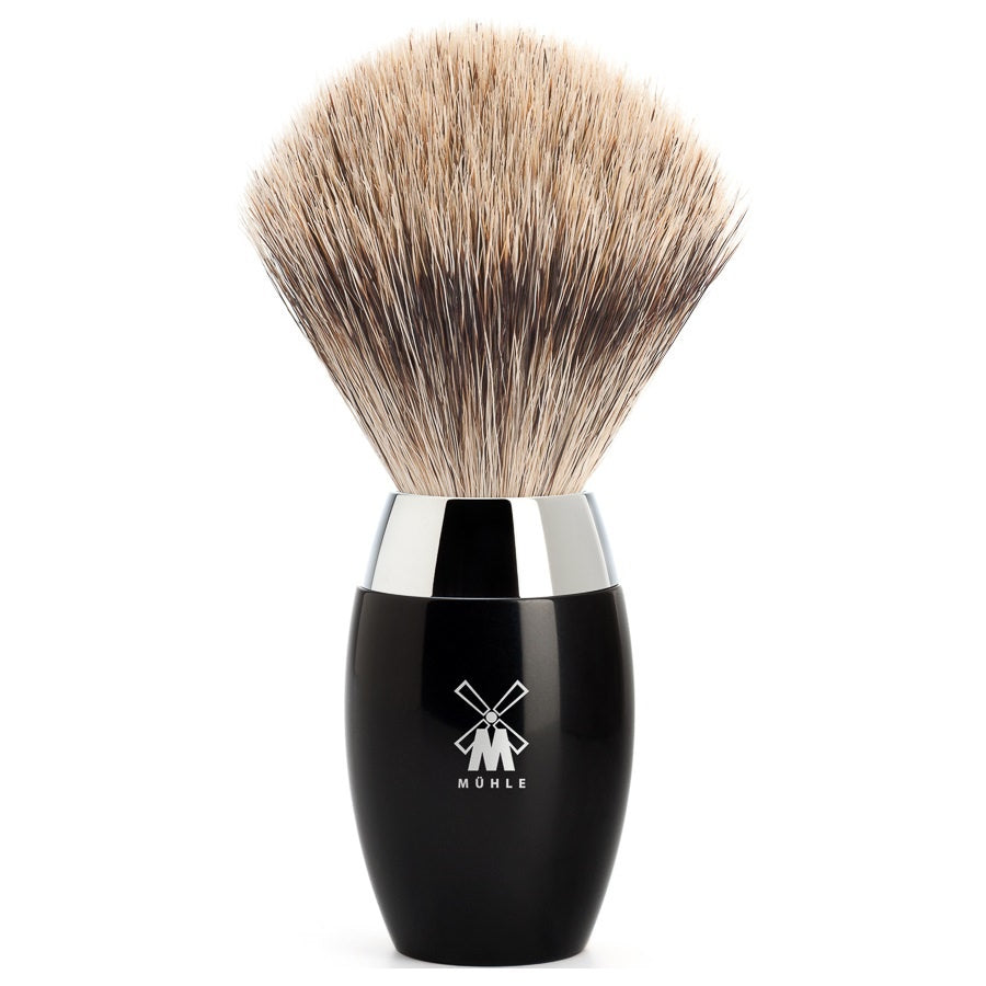 Muhle Scheerkwast Fijndas Kosmo Zwart (M) is een luxe en functionele scheerkwast die stijl en prestaties perfect combineert. De kwast is gemaakt van bestbadger dassenhaar, dat bekendstaat om zijn uitstekende wateropname en zachte aanraking. Dit zorgt voor een rijk en romig schuim, waardoor het scheren comfortabeler en effectiever wordt. Het handvat is gemaak uit edelhars in een elegante zwarte afwerking, wat zorgt voor een moderne en verfijnde uitstraling. De chroom accenten geven de kwast een extra luxe touch en zorgen voor stevigheid en vochtbestendigheid. Het ergonomische ontwerp biedt een stevige grip en ligt prettig in de hand, waardoor deze scheerkwast ideaal is voor zowel beginnende als ervaren scheerders die op zoek zijn naar kwaliteit en comfort in hun scheerroutine.