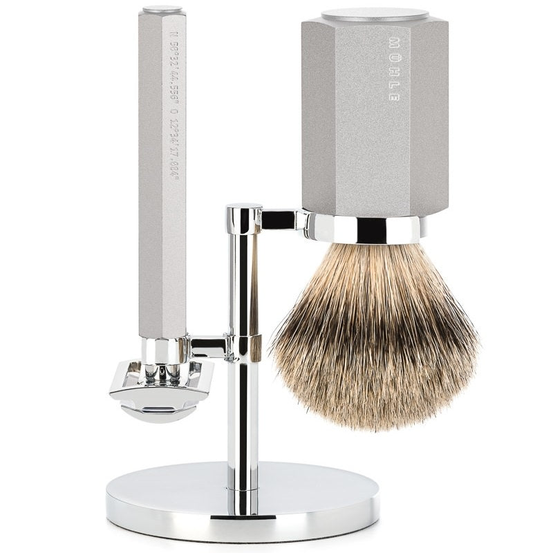 Muhle Hexagon Scheerkwast & Razor Standaard Chroom