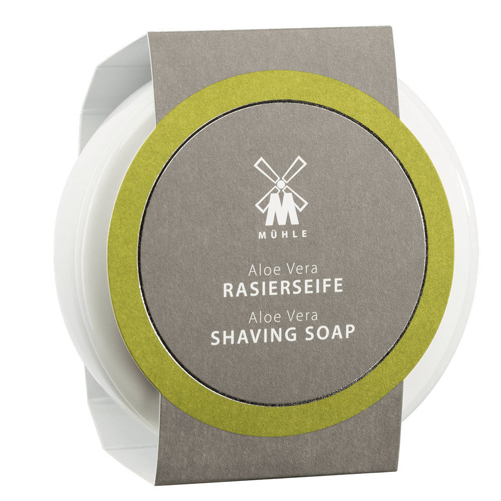 Muhle Scheerzeep Aloe Vera is een milde en verzorgende scheerzeep, geschikt voor alle huidtypes, waaronder de gevoelige huid. De formule met aloë vera hydrateert en verzacht de huid, waardoor irritaties tijdens het scheren worden verminderd en de huid na het scheren comfortabel aanvoelt. De scheerzeep creëert een rijk en romig schuim dat het scheermes soepel laat glijden voor een glad resultaat. De porseleinen kom geeft een klassieke uitstraling en is herbruikbaar.