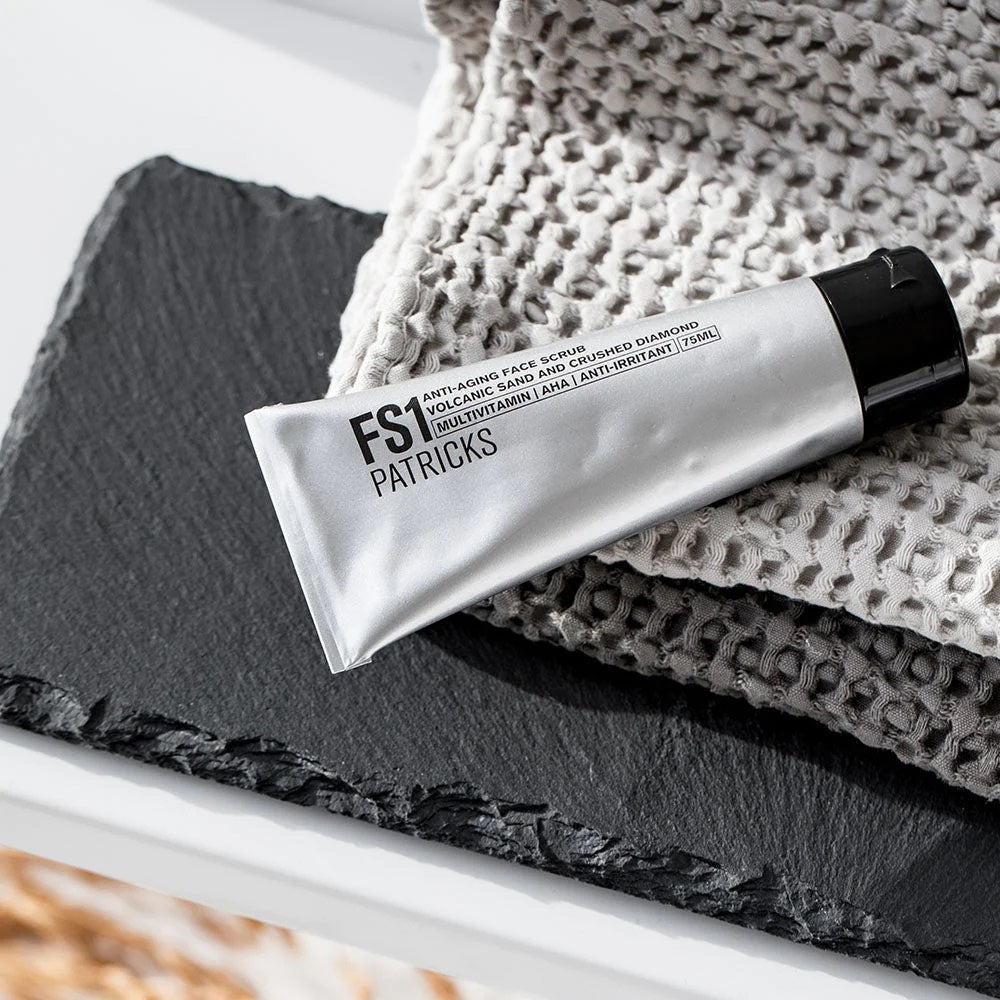 Patricks FS1 Anti-Aging Face Scrub is een krachtige gezichtsscrub die geschikt is voor alle huidtypen. Het combineert een innovatieve mix van gemalen diamant en vulkanisch zand microdeeltjes met AHA om de huid grondig te reinigen. Deze rijke formule is samengesteld met anti-verouderingspeptiden en multivitaminen om een geavanceerde behandeling te bieden die de huid gladder, helderder en gevoed achterlaat. Gebruik Patricks FS1 Anti-Aging Face Scrub als onderdeel van je dagelijkse huidverzorgingsroutine voor een stralende, gezonde huid.
