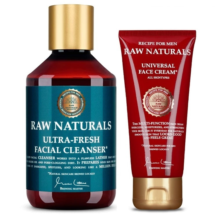RAW Naturals Skincare Essentials Kit biedt een complete en gebalanceerde verzorgingsroutine voor je huid. Deze kit bevat twee essentiële producten: de Ultra-Fresh Facial Cleanser en de Universal Face Cream. Beide producten zijn ontworpen voor dagelijks gebruik, geschikt voor alle huidtypes en bevatten natuurlijke ingrediënten zoals zwarte thee, haverolie en hopextracten om een frisse, gezonde en stralende huid te bevorderen. Met deze kit krijg je een volledige huidverzorgingsroutine voor een gerevitaliseerde en evenwichtige huid.