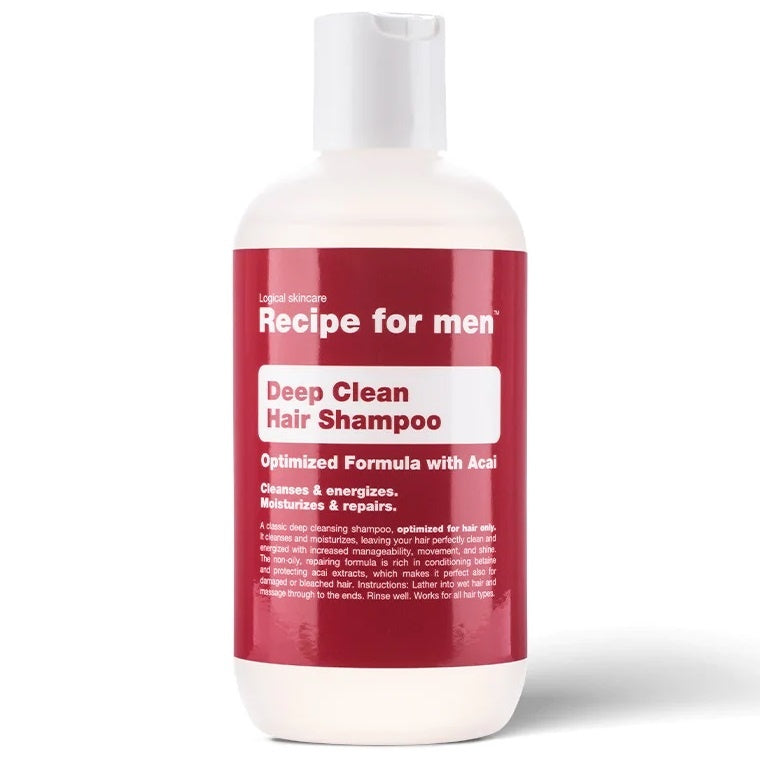 Recipe for men Deep Cleansing Shampoo is een essentieel product voor mannen die streven naar een grondige reiniging van hun haar en hoofdhuid. Met zijn krachtige formule, doordrenkt met verzorgende acaibessen en hydraterende betaine, biedt deze shampoo een diepe reiniging die vuil, overtollige oliën en productresten effectief verwijdert. Tegelijkertijd beschermt en hydrateert het de hoofdhuid, waardoor je haar zacht aanvoelt en er gezond uitziet. Met deze shampoo ben je klaar om de dag vol vertrouwen tegemoet te treden.