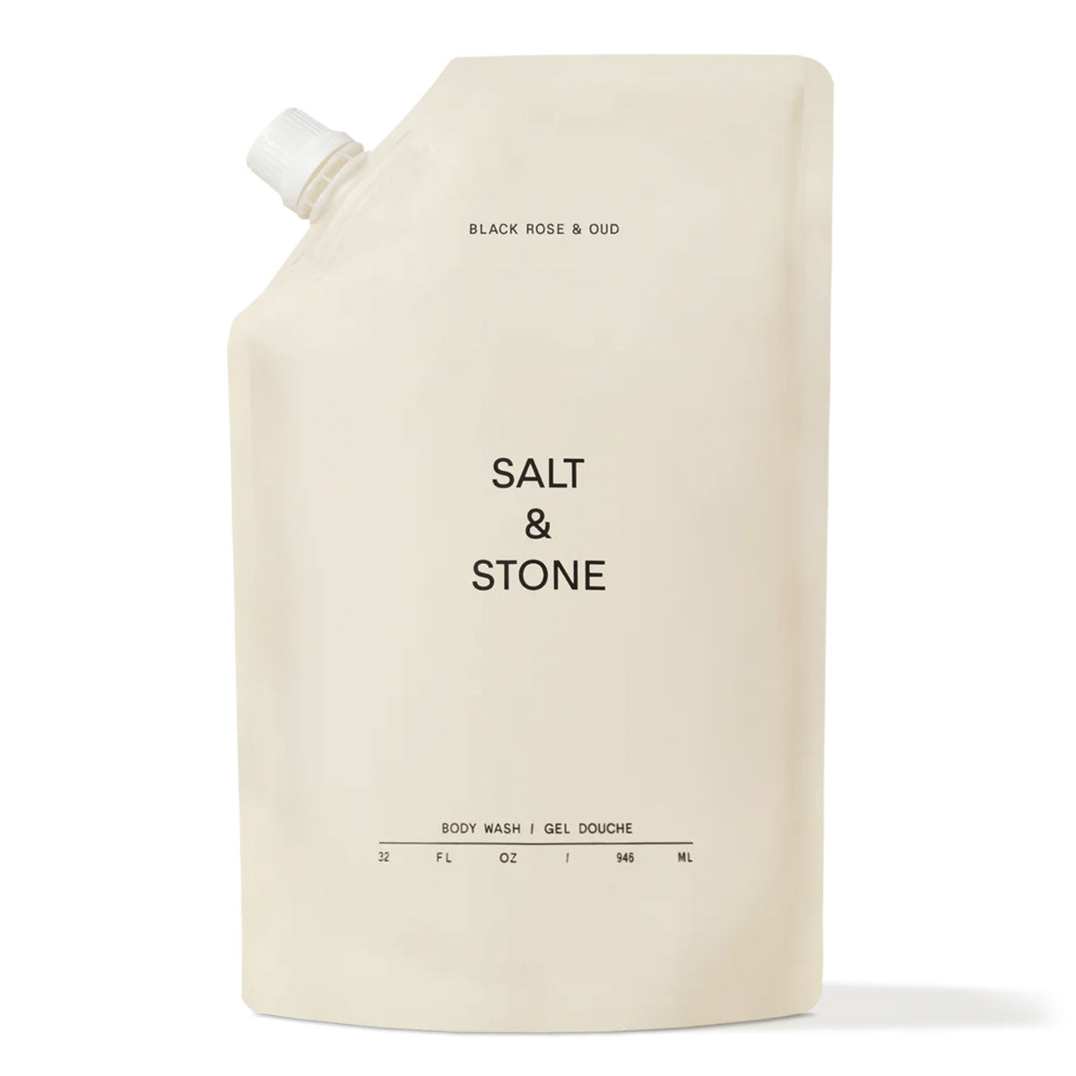 Salt & Stone Body Wash Black Rose & Oud Refill is een ideale dagelijkse reiniger voor een gezonde, stralende huid. Deze body wash bevat een rijke mix van natuurlijke, plantaardige ingrediënten uit de oceaan, antioxidanten en hydraterende elementen om de huid te herstellen. Dankzij de krachtige combinatie van zeewierextracten en spirulina wordt de geïrriteerde en aan de elementen blootgestelde huid op milde wijze gekalmeerd en geregenereerd. De antioxidanten in het bosbessenextract en vitamine C beschermen de huid tegen schadelijke effecten van vrije radicalen die ontstaan door blootstelling aan de zon. Niacinamide, ook wel bekend als vitamine B3, heeft een bewezen effect op het creëren van een sterkere, gezonde huidbarrière en het verbeteren van de huidtextuur. Hyaluronzuur zorgt voor een diepe hydratatie tijdens het reinigen en de toevoeging van probiotica behoudt de natuurlijke balans van de huid.