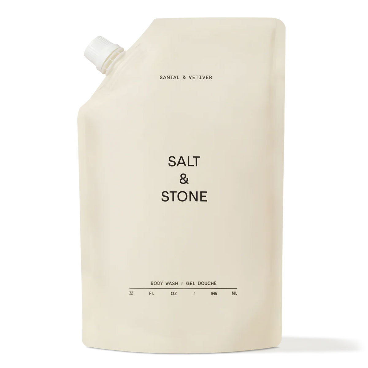 Salt & Stone Body Wash Santal & Vetiver Refill heeft een warme en aardse geur. Het sandelhout biedt een zachte, houtachtige noot terwijl de toevoeging van kardemom en vetiver aardse en kruidige tonen toevoegen. De combinatie van deze ingrediënten creëert een subtiele, maar aanwezige geur die langdurig blijft hangen en zorgt voor een fris gevoel gedurende de dag.