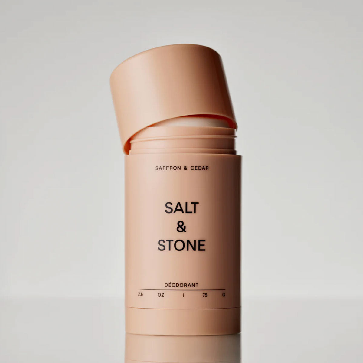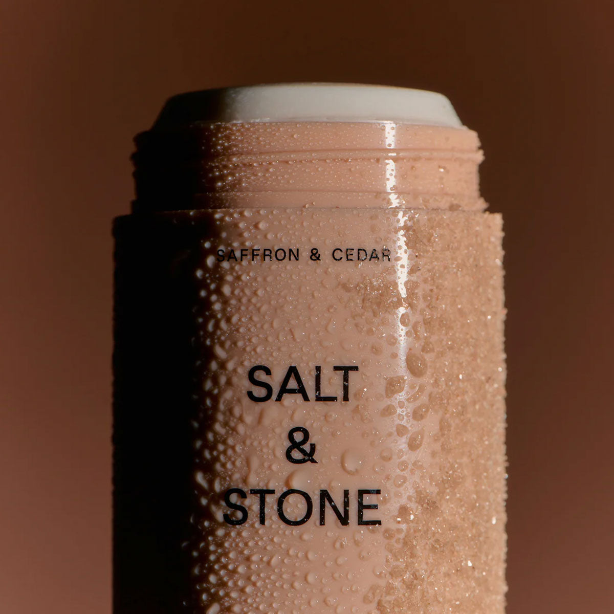Salt & Stone Deodorant Saffron & Cedar biedt langdurige bescherming tegen ongewenste geuren met een kruidige, aardse, houtachtige geur. Deze natuurlijke deodorant is gemaakt met plantaardige ingrediënten die de huid verzorgen en hydrateren, zonder schadelijke stoffen zoals aluminium, parabenen of alcohol. De warme tonen van saffraan en cederhout zorgen voor een subtiele geur die de hele dag blijft hangen. Dankzij de zachte, niet-plakkerige formule trekt de deodorant snel in en laat geen vlekken achter op kleding. Geschikt voor alle huidtypen, inclusief de gevoelige huid.