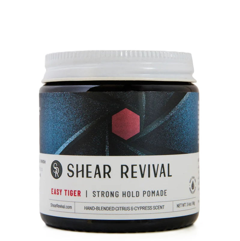 Shear Revival Easy Tiger Traditional Pomade brengt de nostalgie van klassieke oliebasis pomades terug, maar met een moderne twist. Deze pomade biedt een semi-matte finish en een sterke hold, perfect voor het stylen van elk haartype. Verrijkt met shea boter, castor-, avocado- en jojoba-olie, niet alleen zorgt het voor langdurige fixatie, maar ook voor diepe verzorging en hydratatie van je haar gedurende de dag. Of je nu gaat voor een gladde, gestructureerde look of een meer natuurlijke, getextureerde stijl, Easy Tiger is perfect om je haar te transformeren met een vleugje nostalgische elegantie en moderne luxe.