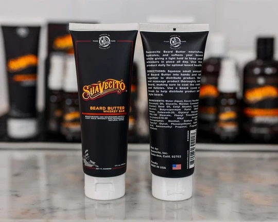 Suavecito Beard Butter Whiskey Bar is de ultieme oplossing voor baardverzorging. Deze hoogwaardige formule hydrateert en voedt de baard intensief, waardoor hij gezond en stralend blijft. De lichte hold zorgt voor een perfect gestileerde look zonder dat het zwaar aanvoelt. Bovendien is deze beard butter geweldig om te combineren met andere baardproducten, waardoor je eindeloze mogelijkheden hebt om de baard naar wens te stylen. Kies voor Suavecito Beard Butter Whiskey Bar en geef je baard de liefdevolle verzorging die hij verdient.