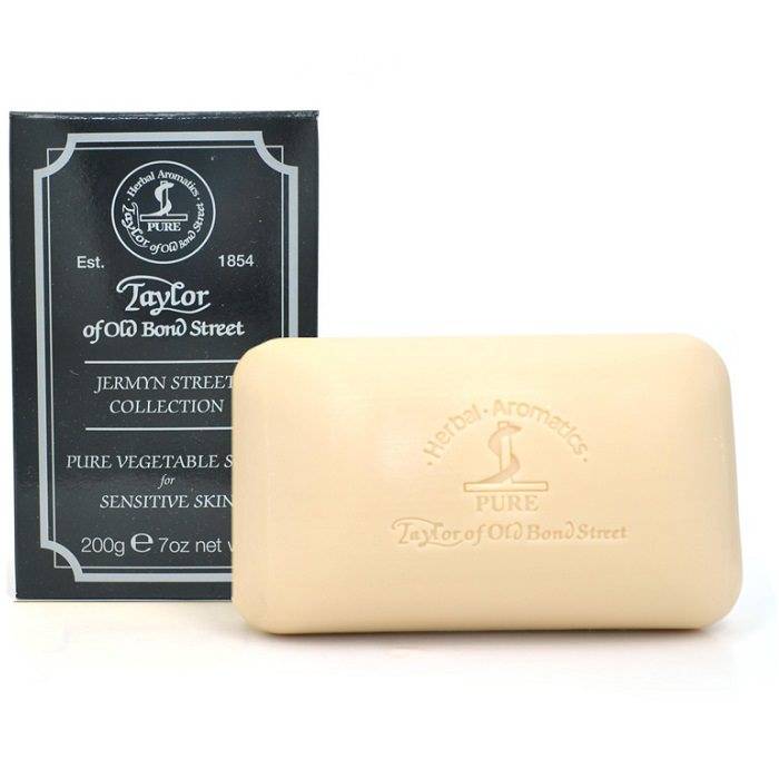 Taylor of Old Bond Street Badzeep Jermyn Street is speciaal ontwikkeld om de gevoelige huid te reinigen en te verzorgen. Verrijkt met hoogwaardige ingrediënten, reinigt deze zeep grondig zonder de huid uit te drogen of te irriteren. De frisse en bloemige aroma's zorgen niet alleen voor een aangename geur, maar helpen ook om de zintuigen te verfrissen en te revitaliseren. Met zijn verzorgende en hydraterende werking is deze badzeep ideaal voor mannen die op zoek zijn naar een verfijnde reiniging met een vleugje luxe.