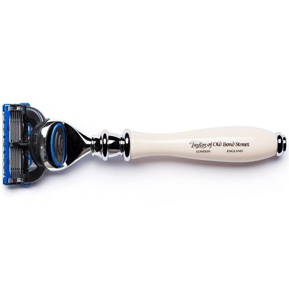Taylor of Old Bond Street Fusion Scheermes Victorian Ivory combineert tijdloze elegantie met moderne functionaliteit. Met een handvat met ivoorkleurige afwerking en een fusion kop biedt dit scheermes een perfecte balans tussen stijl en prestatie. Ontworpen voor gebruik met Gillette Fusion-scheermesjes, biedt dit scheermes een glad en nauwkeurig scheerresultaat, terwijl het tegelijkertijd een luxueuze scheerervaring biedt. Met zijn klassieke uitstraling en hoogwaardige constructie is dit scheermes een must-have voor elke moderne gentleman.