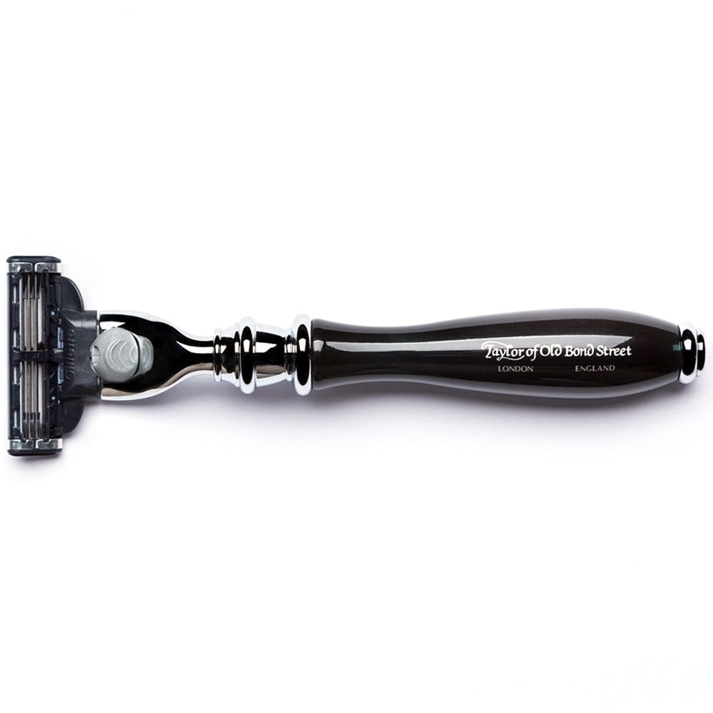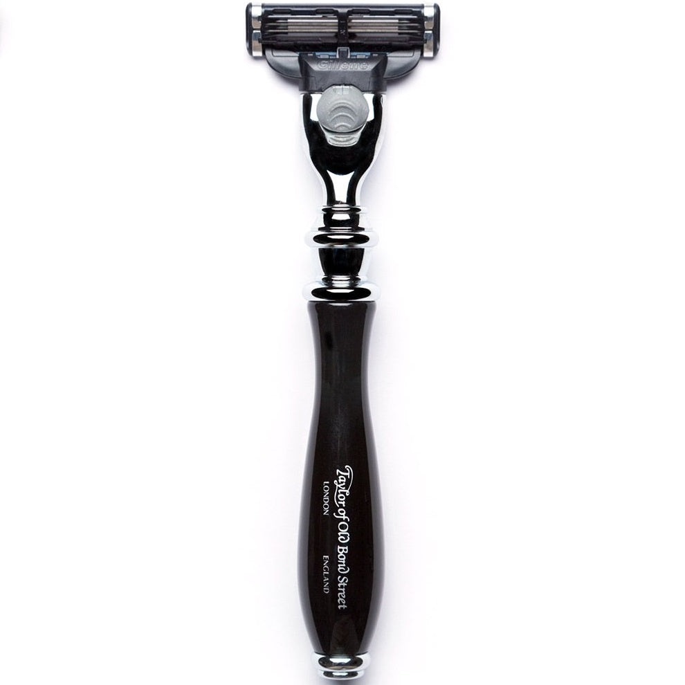 Taylor of Old Bond Street Mach3 Scheermes Victorian Zwart combineert klassieke elegantie met moderne precisie. Met zijn stijlvolle zwarte handgreep en hoogwaardige Mach3-bladen biedt dit scheermes een comfortabele, gladde en nauwkeurige scheerervaring. Elk detail is zorgvuldig ontworpen, waardoor dit scheermes niet alleen functioneel is, maar ook een verfijnd accessoire dat perfect past in de badkamer van de moderne gentleman.