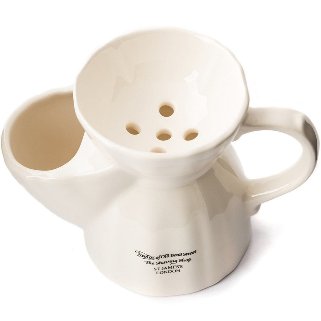 Taylor of Old Bond Street Victorian Scheermok belichaamt verfijning met zijn vervaardiging van hoogwaardig keramiek, een materiaal dat duurzaamheid en elegantie combineert. Met zijn tijdloze ivoorkleur en prachtige Victoriaanse stijl voegt deze mok een vleugje klassieke charme toe aan elke scheerroutine. De zorgvuldig vormgegeven details en het vakmanschap maken het niet alleen een functioneel instrument, maar ook een decoratief element dat perfect past in elke badkamer, waar het een gevoel van weelde en traditie oproept.