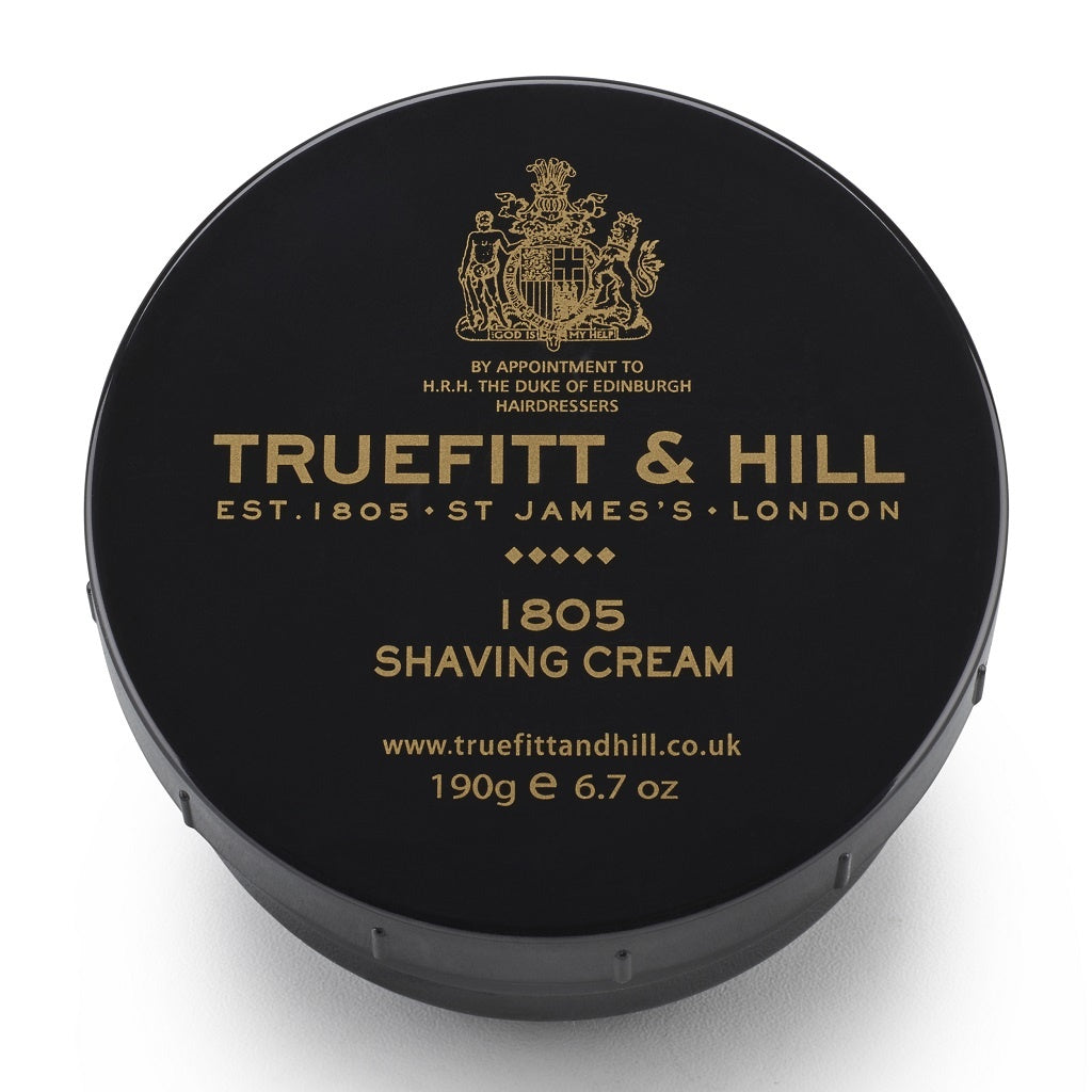 Truefitt & Hill 1805 Scheercrème is een luxe scheerproduct dat zorgt voor een gladde en comfortabele scheerbeurt. Deze romige formule creëert een rijk schuim dat moeiteloos over de huid glijdt, waardoor het scheermes soepeler beweegt en de kans op irritaties vermindert. De scheercrème is geschikt voor alle huidtypen, biedt diepe hydratatie en beschermt de huid tijdens het scheren. Het heeft een verfijnde geur met topnoten van witte meloen, bergamot en citroen, hartnoten van lelie, jasmijn en roos, en warme basisnoten van muskus en amberhout. Deze combinatie van verzorging en geur maakt de 1805 Scheercrème tot een essentieel product voor de moderne man.