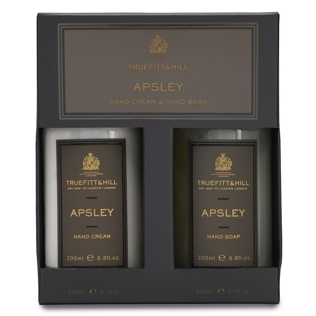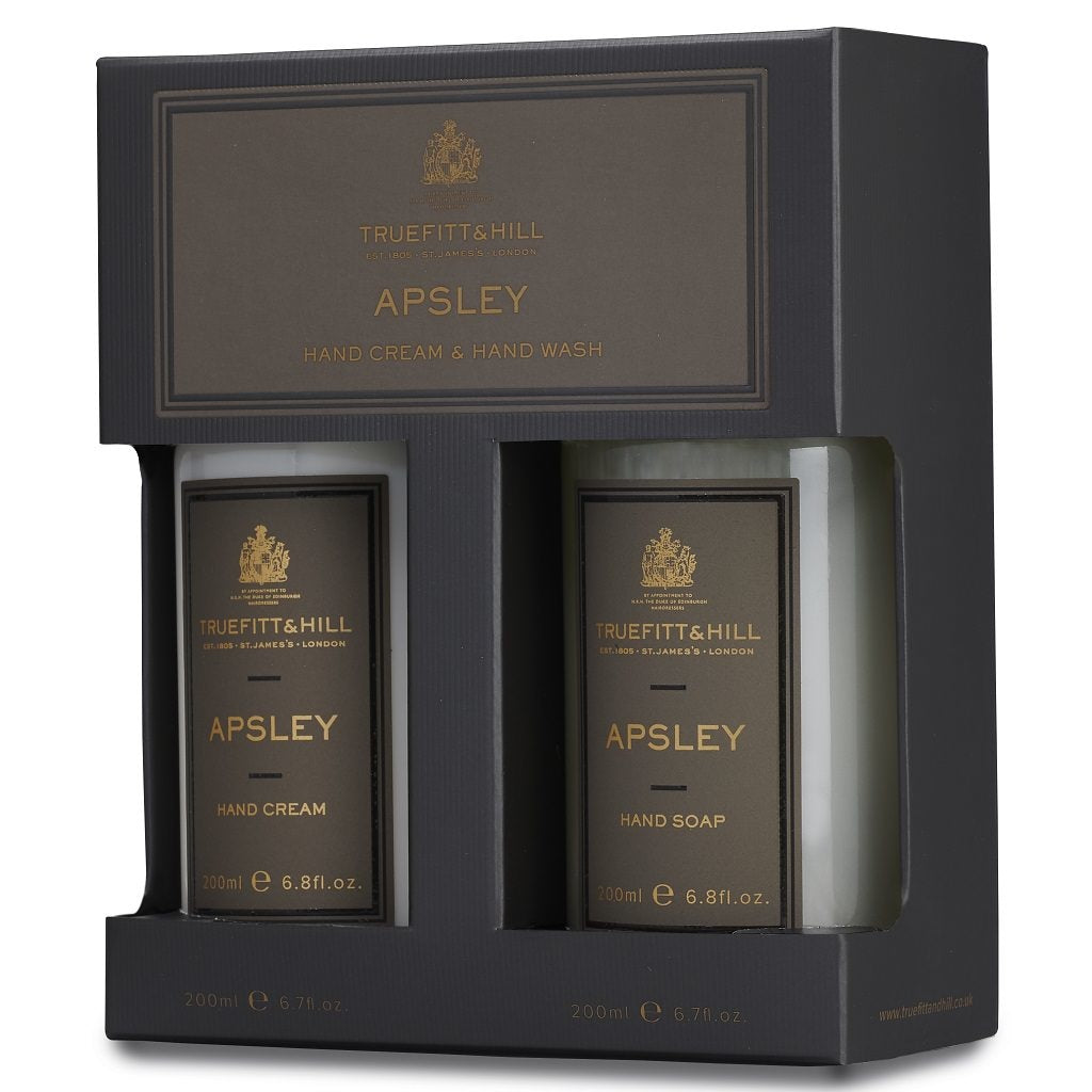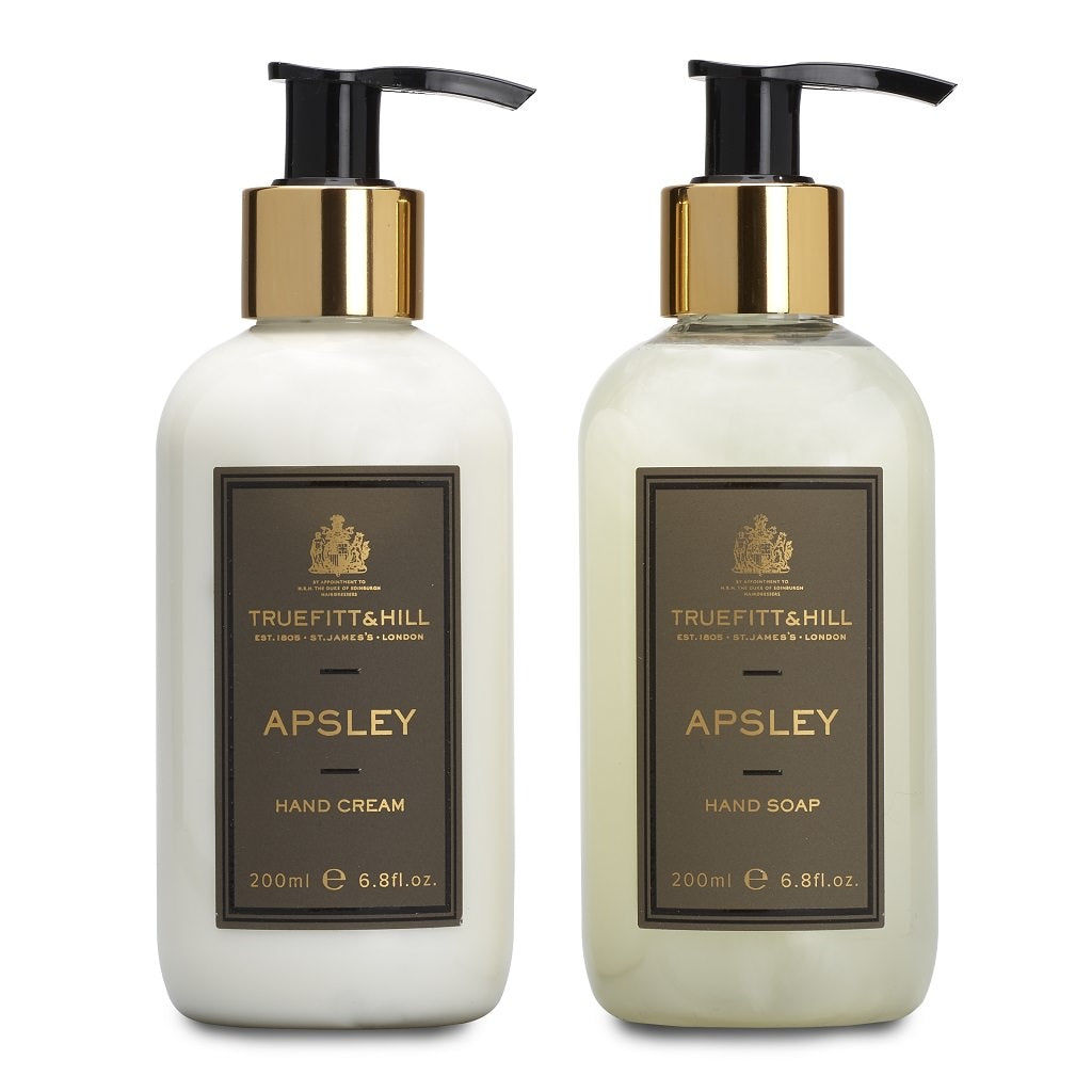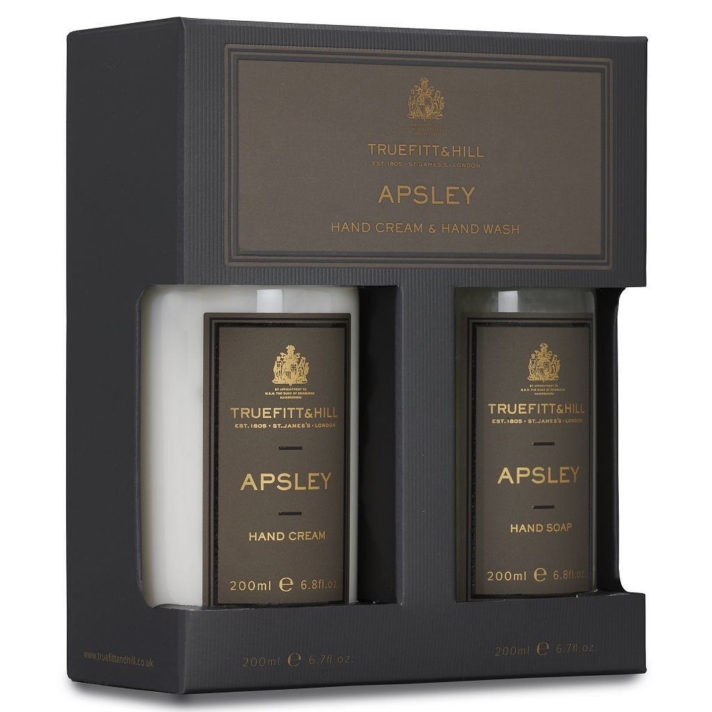 Truefitt & Hill Apsley Handzeep & Handcrème biedt de perfecte combinatie van luxe reiniging en verzorging voor je handen. De handzeep reinigt grondig met een rijk, romig schuim en is verrijkt met de verfijnde Apsley-geur, een mix van verfrissende citrus, kruiden en warme houtachtige noten. Na het wassen zorgt de bijpassende handcrème voor diepe hydratatie, waardoor de handen zacht en soepel blijven, zonder een vettig gevoel. Met dezelfde elegante Ageur biedt deze set een complete, luxueuze handverzorging, perfect voor dagelijks gebruik en ideaal als cadeau.