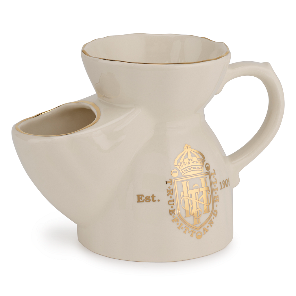Truefitt & Hill Scheermok Porselein Ivoor is een elegante en functionele scheermok voor een luxueuze scheerbeurt. Met zijn unieke ontwerp voegt deze scheermok een vleugje luxe toe aan je dagelijkse scheerroutine. Het hoogwaardige porselein is zorgvuldig een elegante uitstraling, terwijl de royale capaciteit van de mok ervoor zorgt dat je scheerzeep perfect kunt mengen. De scheermok biedt een comfortabele grip en een ideale maat voor het creëren van een rijk en romig schuim. Met de subtiele afdruk van het Truefitt & Hill-logo maken het een stijlvol accessoire voor zowel traditionele als moderne scheerliefhebbers. Een must-have voor wie waarde hecht aan een premium scheerbeurt.