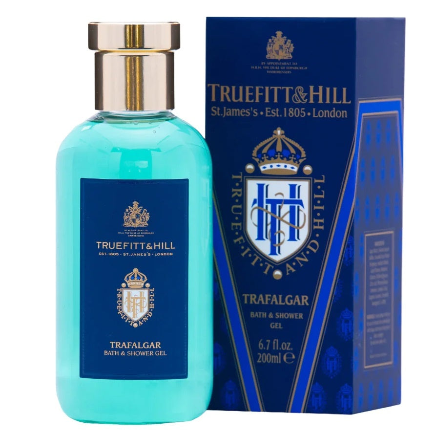 Truefitt & Hill Trafalgar Bad en Douchegel is speciaal ontwikkeld om de huid te reinigen en te verfrissen. Deze verkwikkende gel combineert een rijke schuimformule met hydraterende ingrediënten, waardoor je een zijdezachte huid hebt na elke douche of bad. De geur van Trafalgar, met zijn frisse citrusnoten en kruidige ondertonen, zorgt voor een verzorgt gevoel die je zintuigen prikkelt. Perfect voor dagelijks gebruik, deze bad- en douchegel laat je huid stralen en geeft je de energie die je nodig hebt om de dag door te komen. Geniet van een moment van luxe met Truefitt & Hill Trafalgar Bad en Douchegel en geef je dagelijkse verzorging een upgrade.