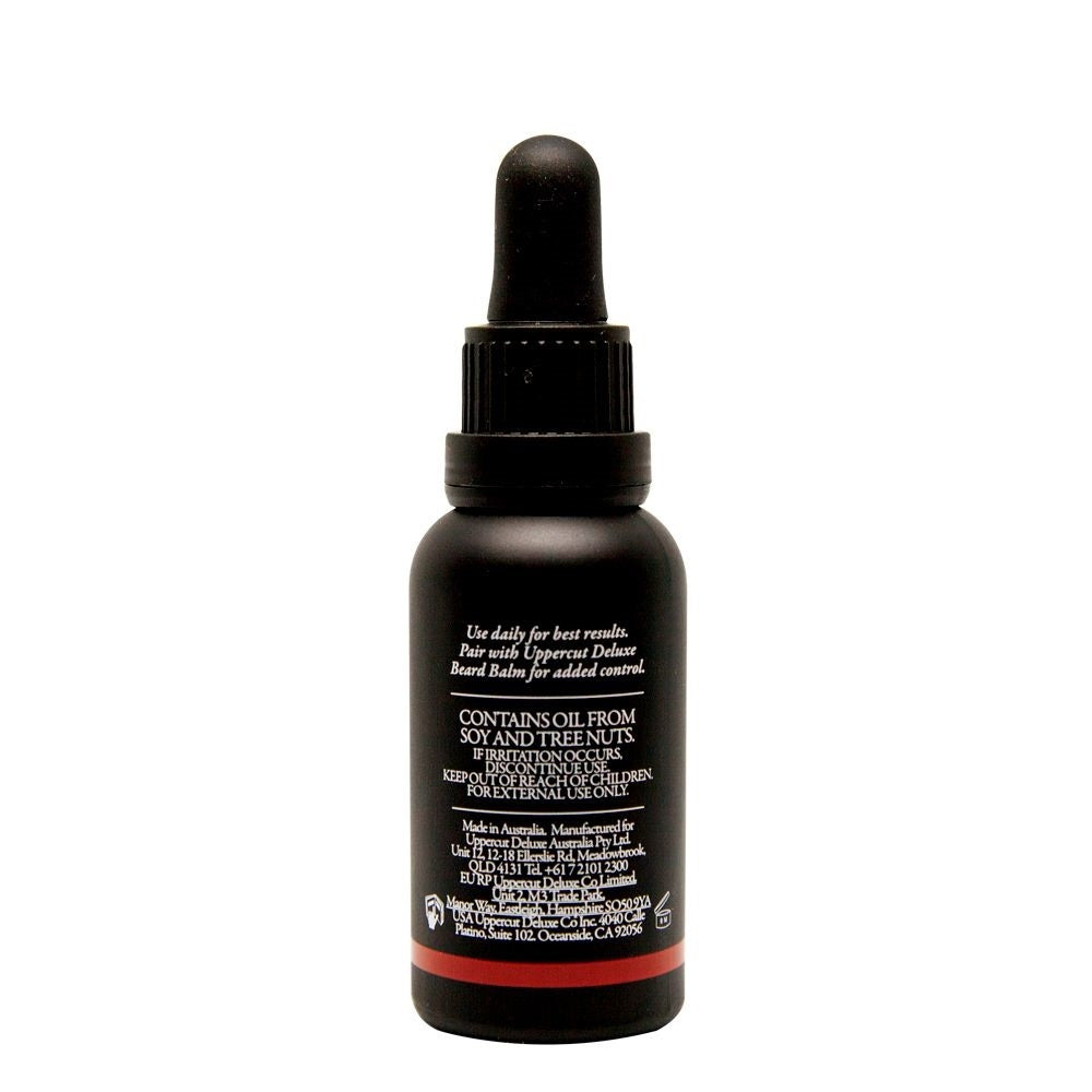 Uppercut Deluxe Baardolie is een lichtgewicht, niet-vette olie die speciaal is ontwikkeld voor het verzachten, verzorgen en voeden van alle soorten baarden. De formule bevat een rijke mix aan oliën, waaronder argan-, jojoba-, avocado- en rozemarijnolie, om de baard rijk te hydrateren, verzachten en voeden. De formule is dunner dan traditionele baardoliën voor een soepele applicatie en lichte afwerking. Gebruik deze verzorgende olie om de baard zacht en gezond te houden en irritaties te verminderen.